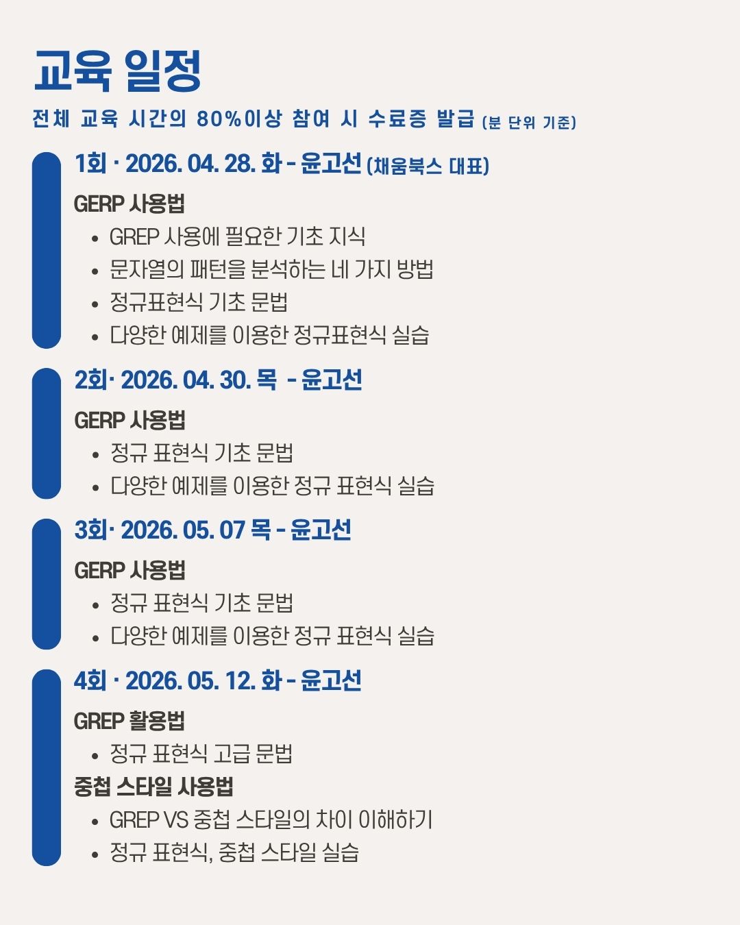 강의기간 2026년 4월 28일 ~ 5월 26일 (화, 목요일)