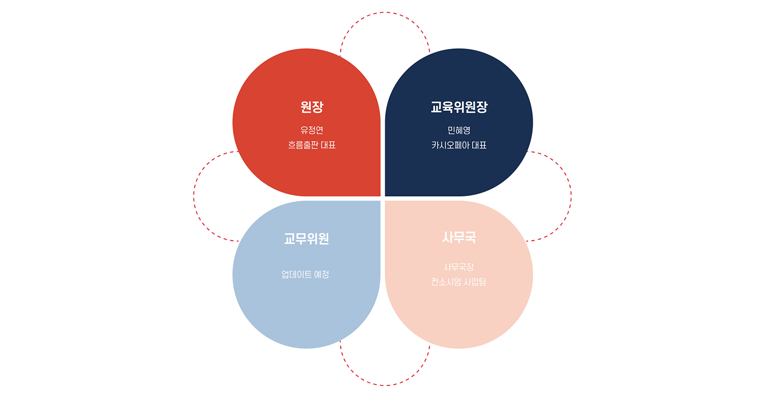 교무위원은 교육기획, 운영, 홍보 등 각 분야의 전문 인력으로 구성되며 매월 1회 정기 회의를 통해 교육의 방향성과 운영 효율성을 지속적으로 점검하고 보완합니다. 서울북인스티튜트는 이와 같은 조직적 협업 체계를 바탕으로 현장 중심의 실질적인 교육을 실현하며 출판 산업과 교육을 잇는 신뢰받는 국내 유일 출판 전문 교육기관으로서의 역할을 수행하고 있습니다.