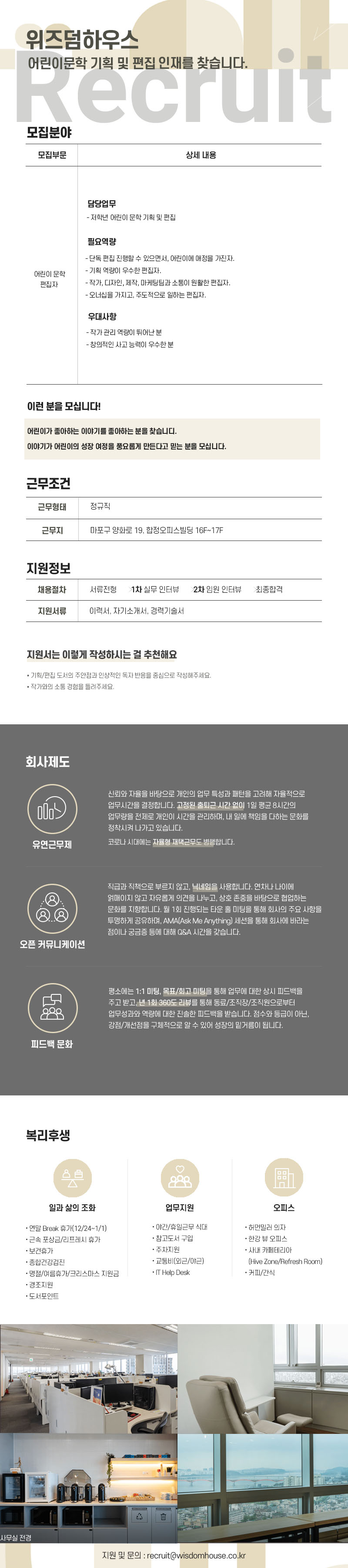 [구인] (주) 위즈덤하우스 어린이문학 기획 편집자 모집 (마감 : 2025.10.26)