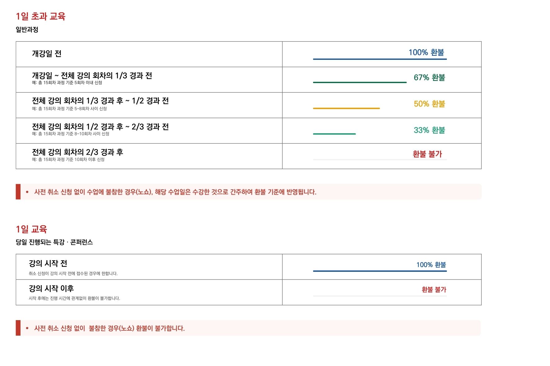 · 환불 기준은 환불 신청 접수일을 기준으로 적용됩니다.